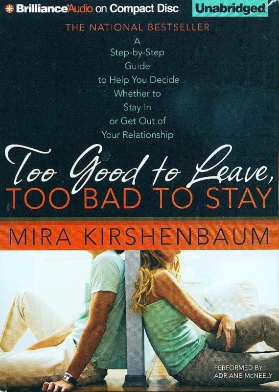 She is the author of four books, including the phenomenally successful Too Good to Leave, Too Bad to Stay, and has appeared on many national television shows, including The Today Show, Maury Povich, Geraldo, Sally Jessy Raphael, and an ABC. Mira Kirshenbaum, the author, calls that in between "ambivalence", and you want to spend as little time as possible being ambivalent.
